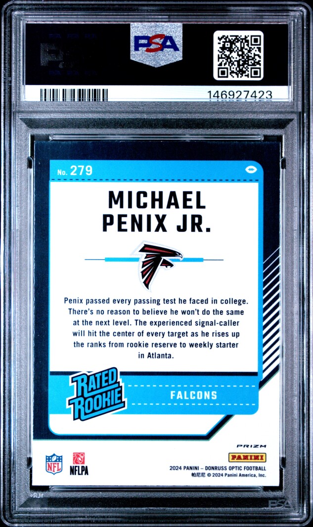 You are purchasing a 2024 Panini Donruss Optic Michael Penix JR. #279 Stars PSA 10. You will receive the exact item in the photographs. Thank you for looking.