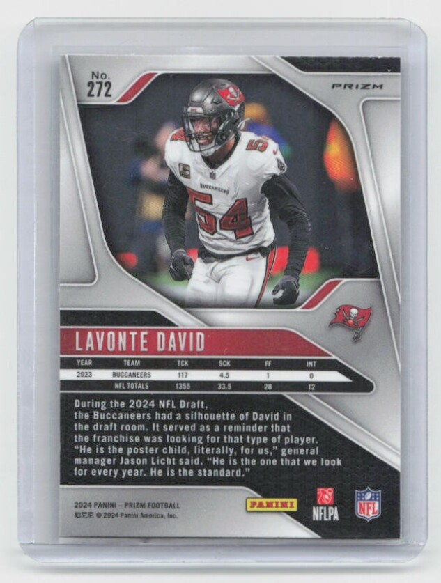 You are purchasing a 2024 Panini Prizm Lavonte David #272 Pink. You will receive the exact item in the photographs. Thank you for looking.