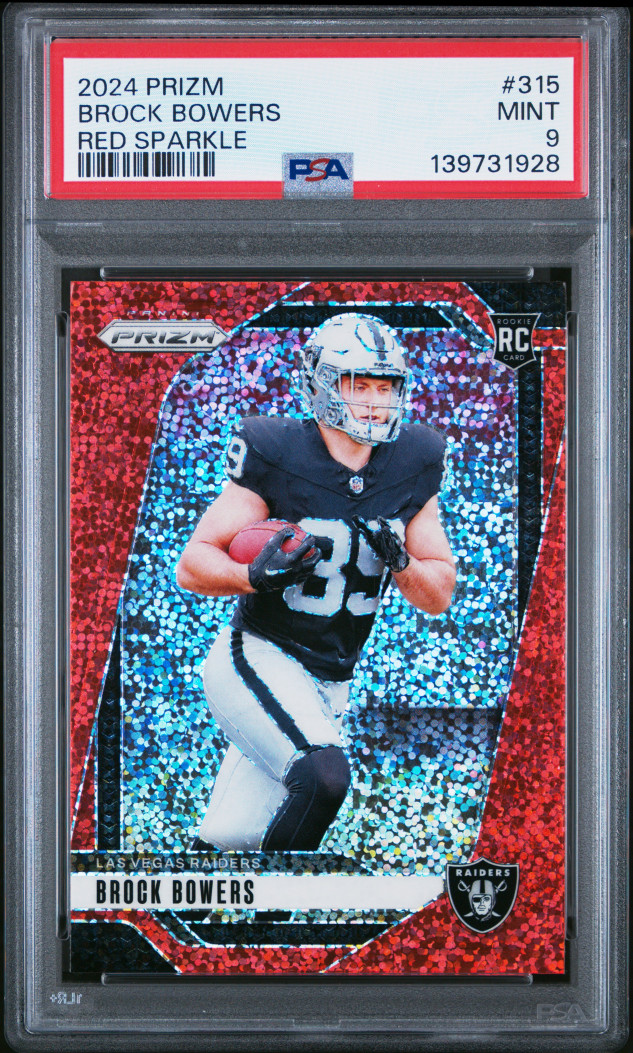 2024 Panini Prizm Brock Bowers Red Sparkle PSA 9