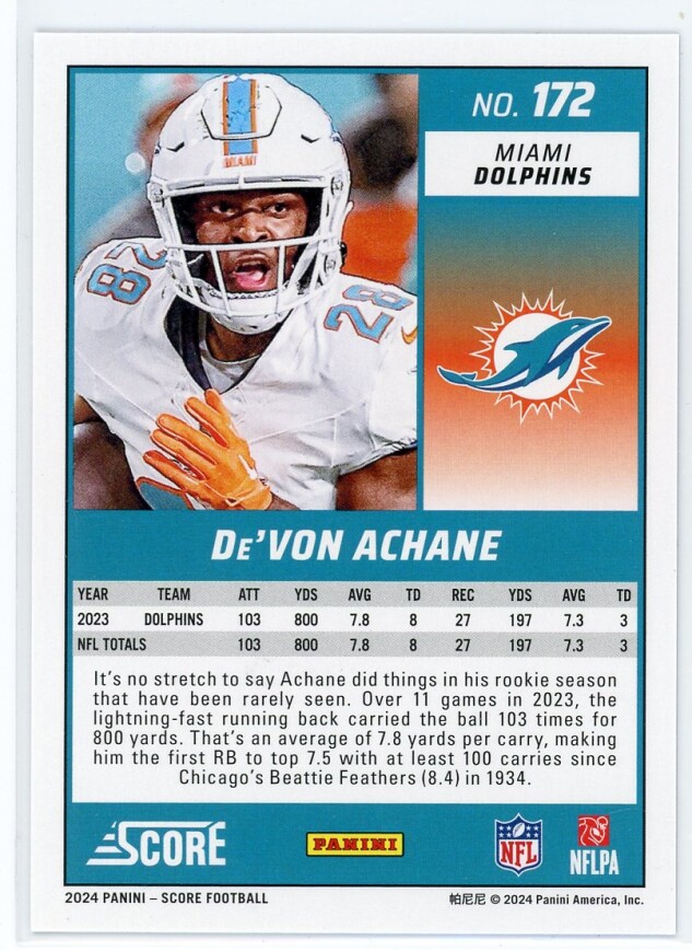 2024 Score #172 De'Von Achane Cubic 2/120