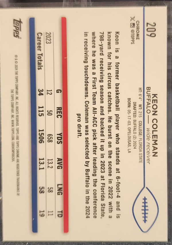 2024 Topps Chrome Keon Coleman Pink Refractor /399