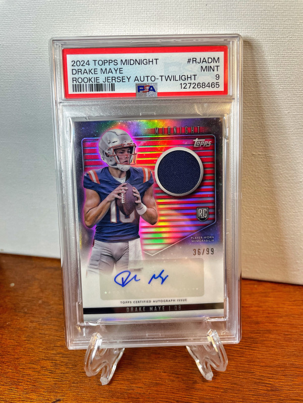 This is (1) 2024 Topps Midnight DRAKE MAYE Rookie Patch Auto #/99 Patriots Color Match RC #RJA-DM. Thank you for checking out my listing!