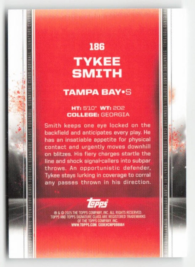 You are purchasing a 2024 Topps Signature Class Tykee Smith #186 RC. You will receive the exact item in the photographs. Thank you for looking.