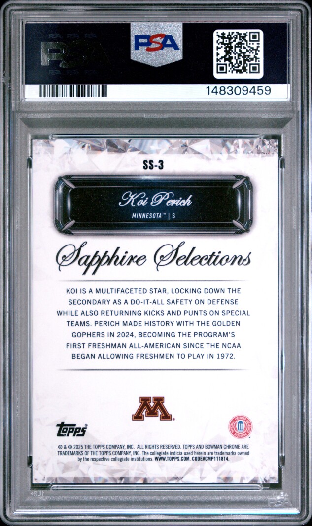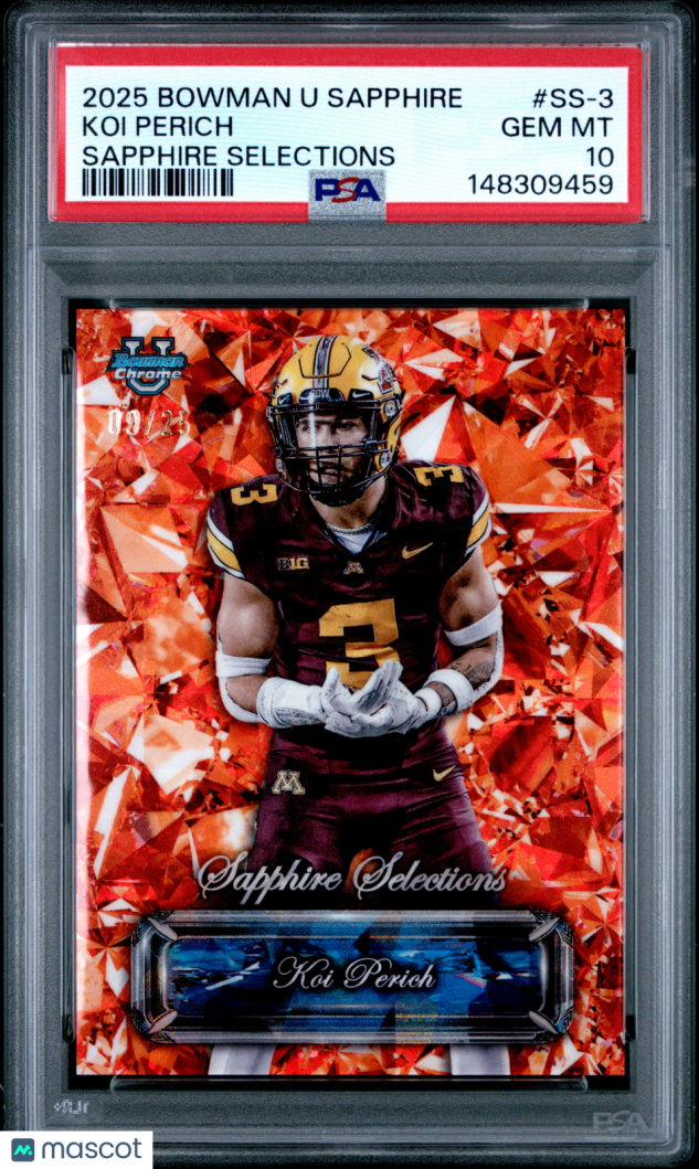 You are purchasing a 2025 Bowman Sapphire Selections Koi Perich Orange Refractor 09/25 #3 PSA 10. You will receive the exact item in the photographs. Thank you for looking.