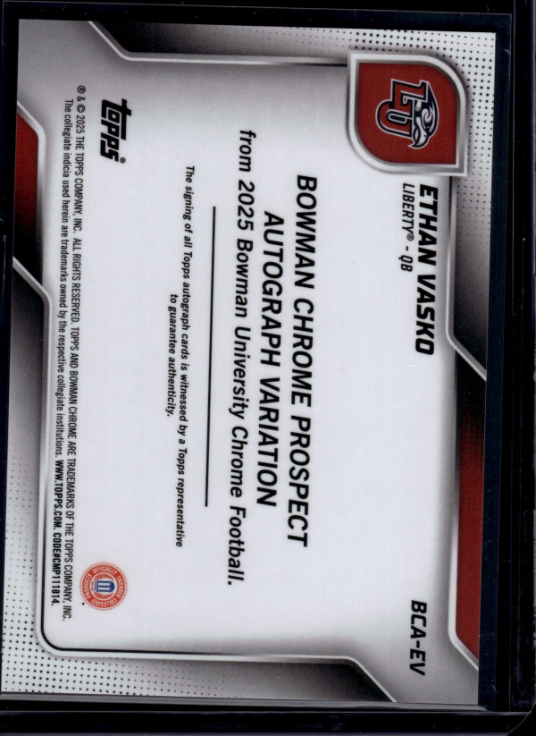 2025 Bowman University Chrome Football Ethan Vasko #BCA-EV Blue Auto