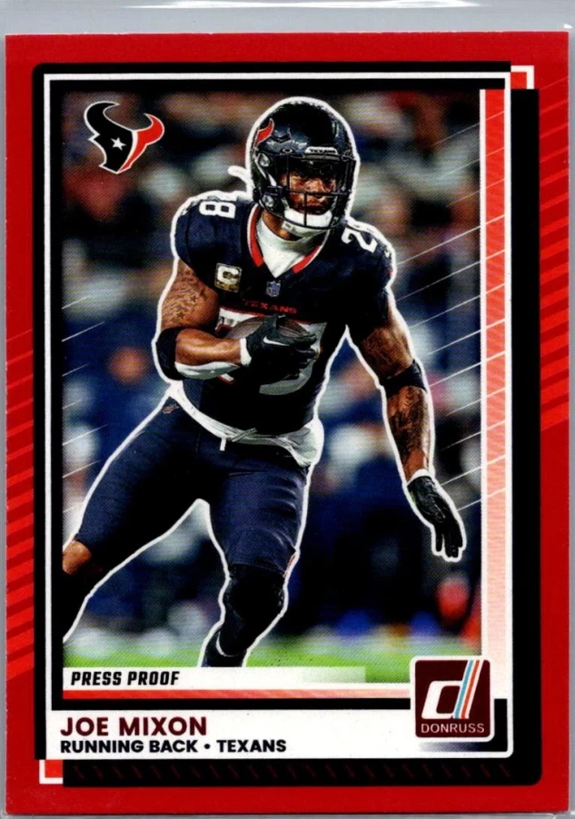 This is a nice example of a 2025 Donruss #184 Joe Mixon Press Proofs Red