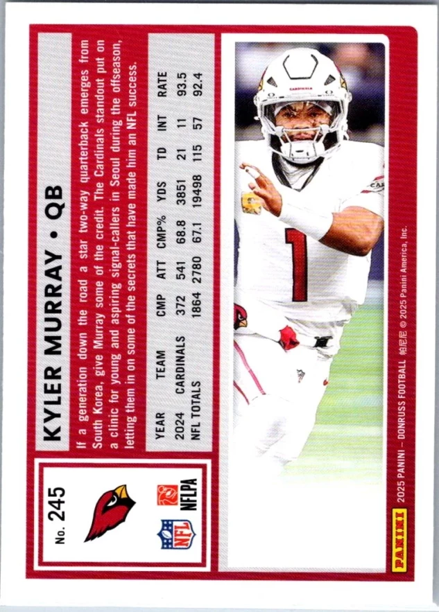 This is a nice example of a 2025 Donruss #245 Kyler Murray
