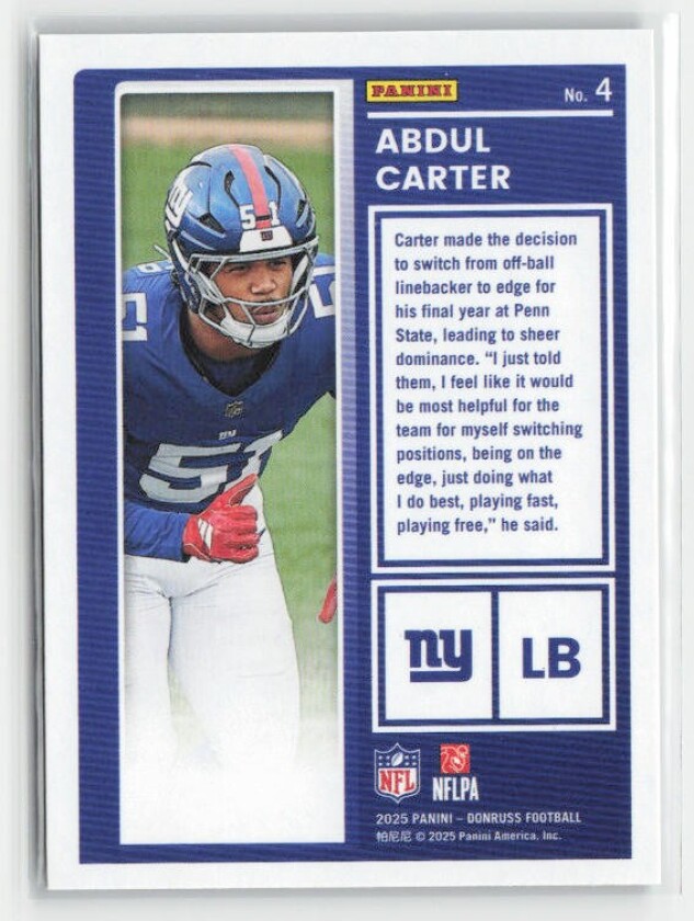 2025 Donruss #4 Abdul Carter The Rookies