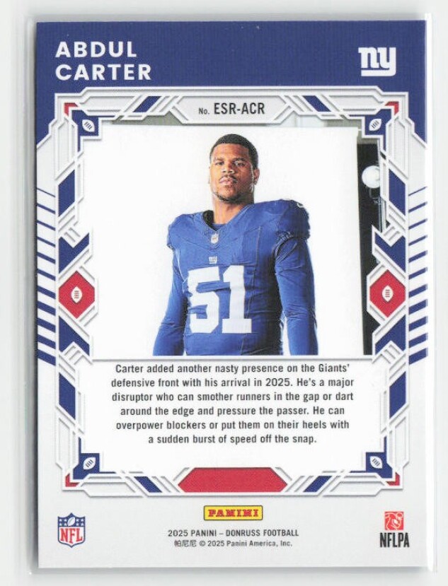 You are purchasing a 2025 Donruss Abdul Carter #ESR-ACR The Elite Series Rookies. You will receive the exact item in the photographs. Thank you for looking.