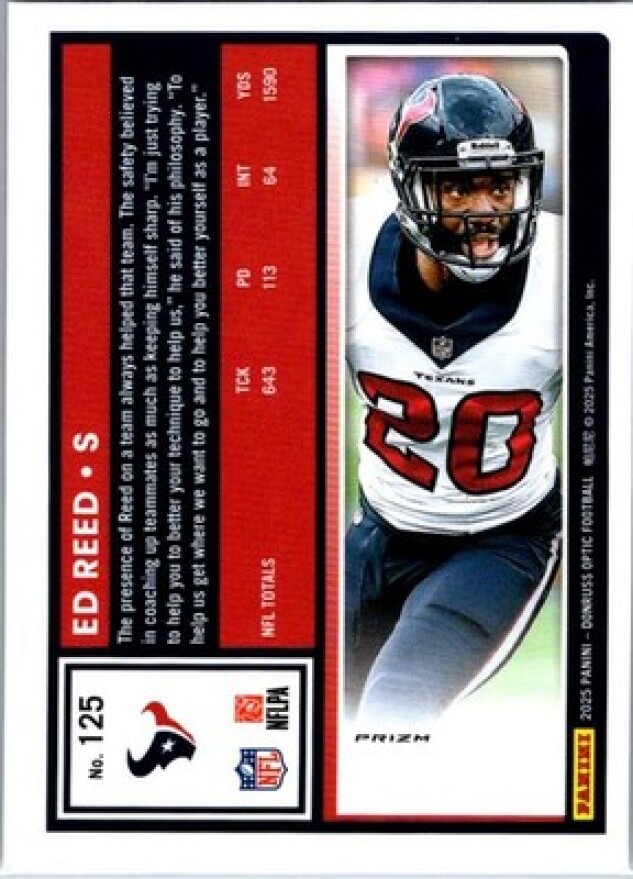 This is a nice example of a 2025 Donruss Optic #125 Ed Reed Holo