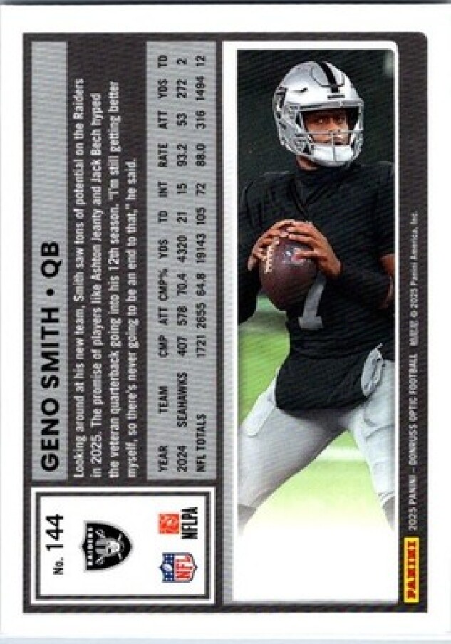 This is a nice example of a 2025 Donruss Optic #144 Geno Smith