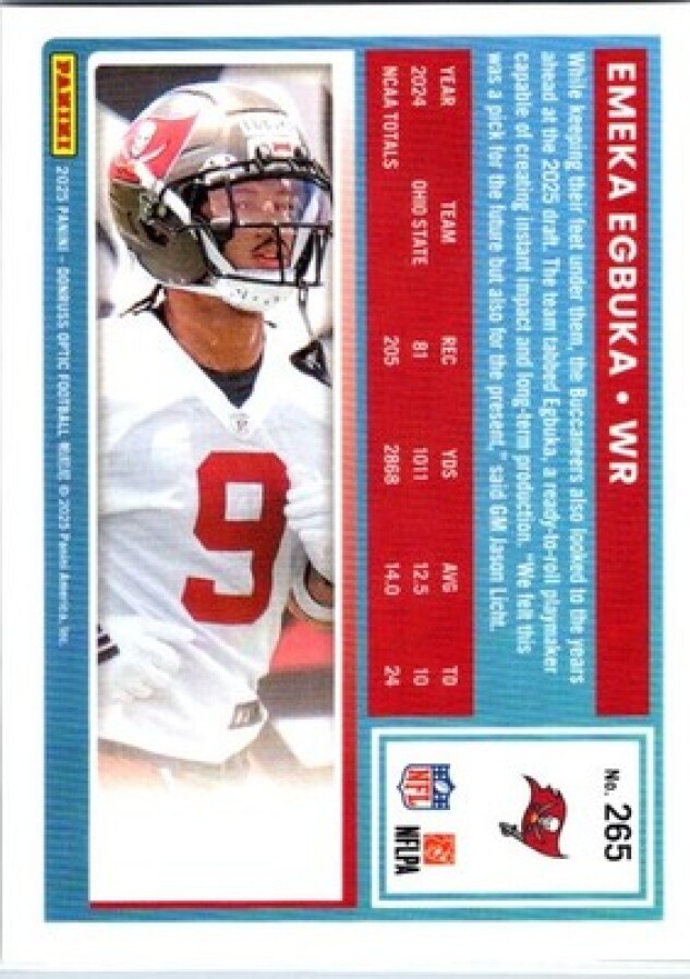 This is a nice example of a 2025 Donruss Optic #265 Emeka Egbuka