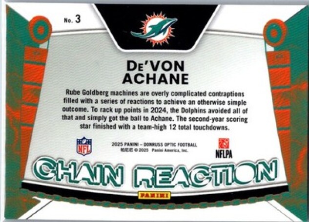 2025 Donruss Optic #3 De'Von Achane Chain Reaction