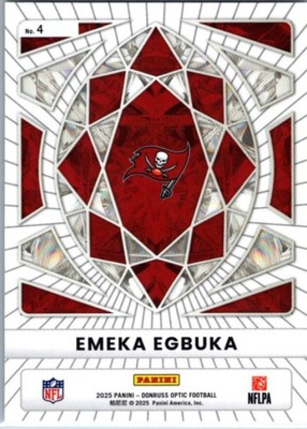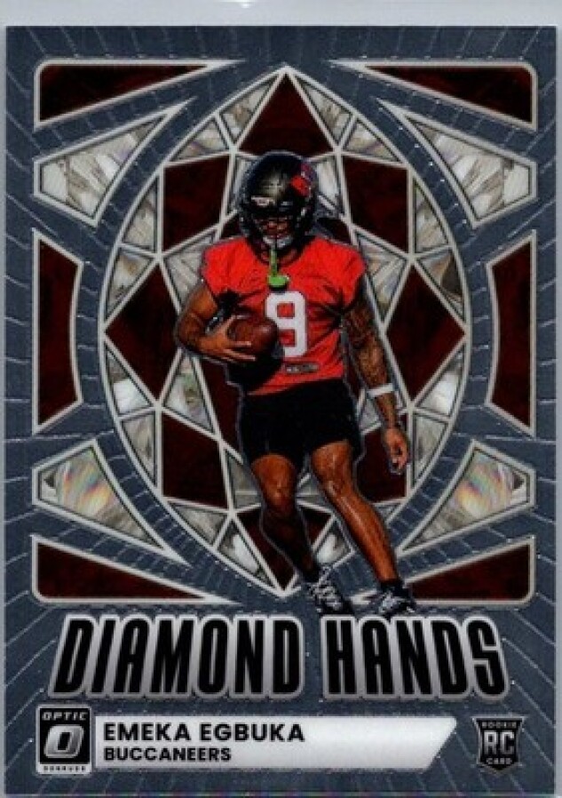 This is a nice example of a 2025 Donruss Optic #4 Emeka Egbuka Diamond Hands
