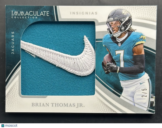 You are purchasing a 2025 Panini Immaculate Collection Insignias Brian Thomas Jr. #IL-BTJ 2 / 5 Nike Swoosh Patch. You will receive the exact item in the photographs. Thank you for looking.