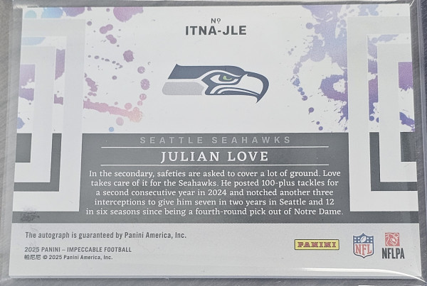 2025 IMPECCABLE JULIAN LOVE SEAHAWKS PATCH 44/99