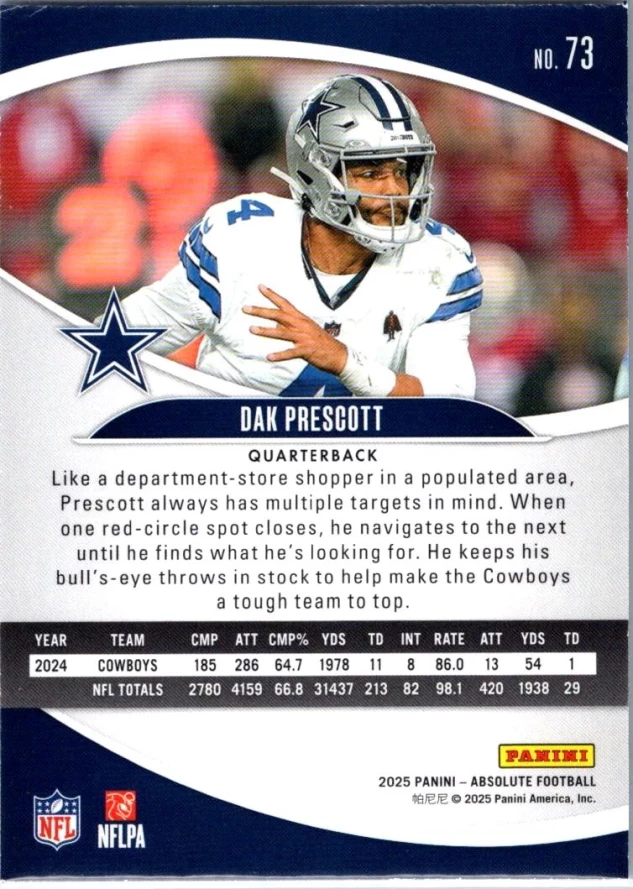 This is a nice example of a 2025 Panini Absolute Countdown Calendar #73 Dak Prescott