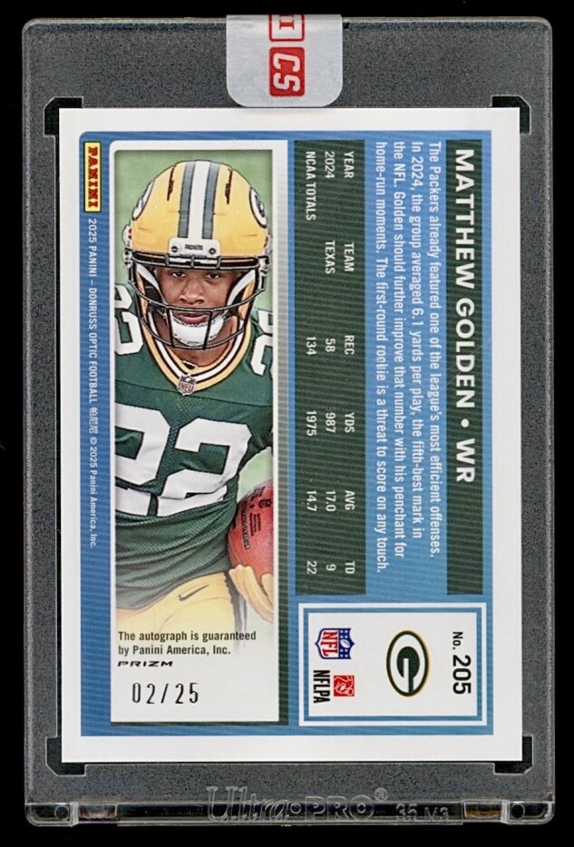 2025 Panini Donruss Optic - MATTHEW GOLDEN #205 Rated Rookie Autograph RPS On Card SSP /25 Blue Ice FACTORY SEALED