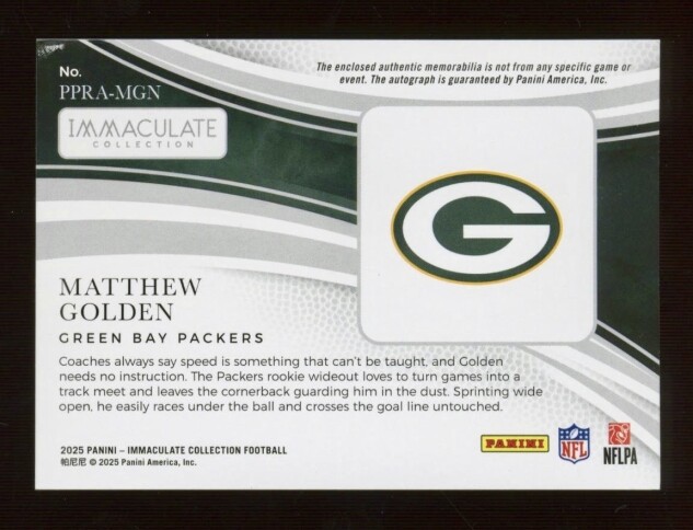 2025 Panini Immaculate - Matthew Golden True RPA ROOKIE PATCH AUTOGRAPH On Card Auto /99 SSP