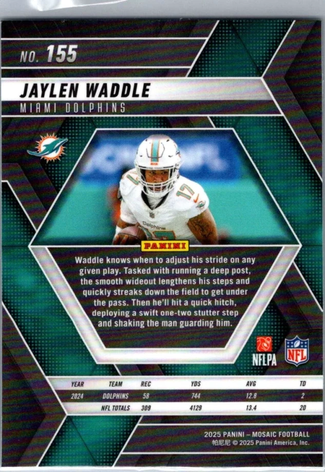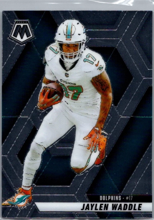 This is a nice example of a 2025 Panini Mosaic #155 Jaylen Waddle