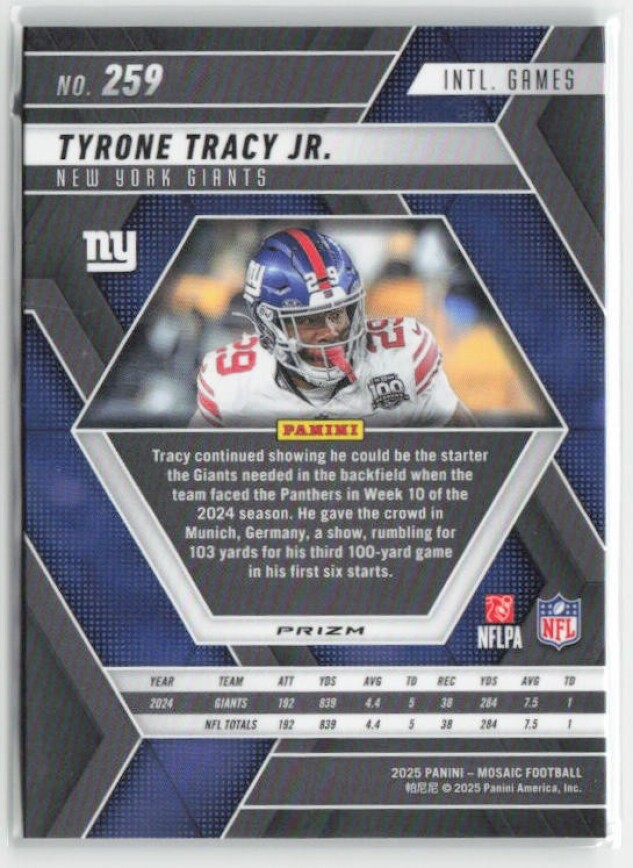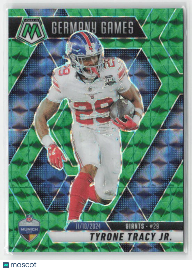 You are purchasing a 2025 Panini Mosaic Tyrone Tracy Jr. #259 Mosaic Green. You will receive the exact item in the photographs. Thank you for looking.