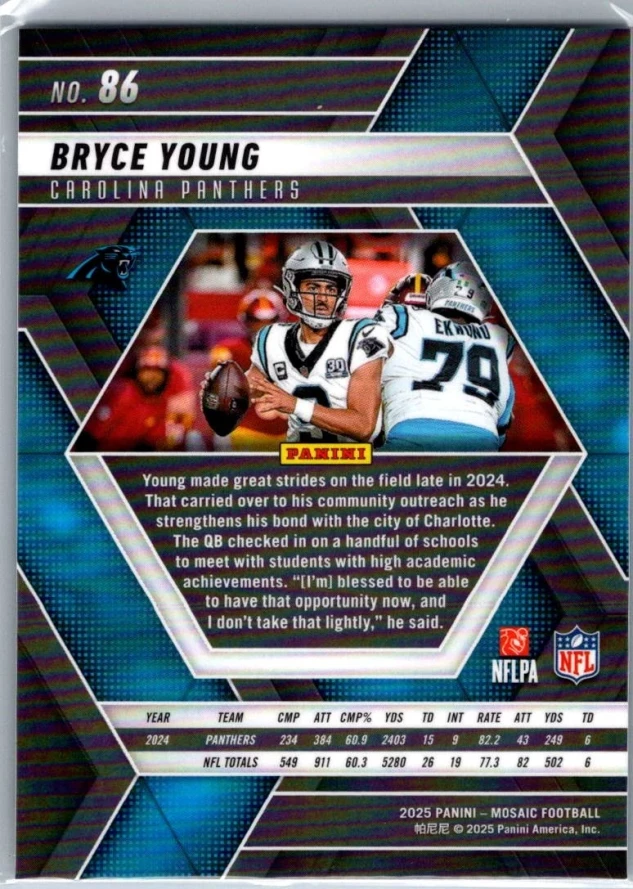 This is a nice example of a 2025 Panini Mosaic #86 Bryce Young