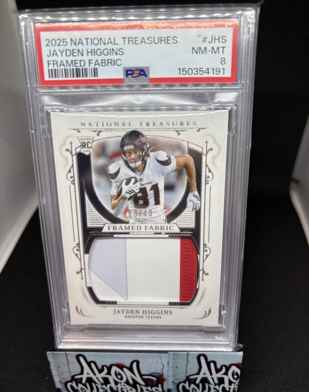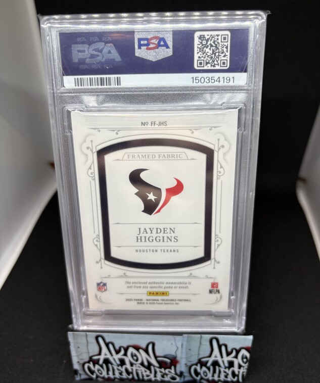 2025 Panini National Treasures Jayden Higgins Framed Fabric Patch RC #/49 Texans
