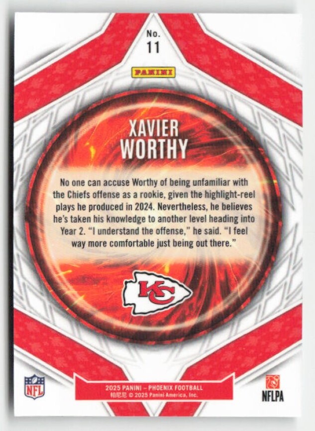 You are purchasing a 2025 Panini Phoenix Xavier Worthy #11 Paragon. You will receive the exact item in the photographs. Thank you for looking.