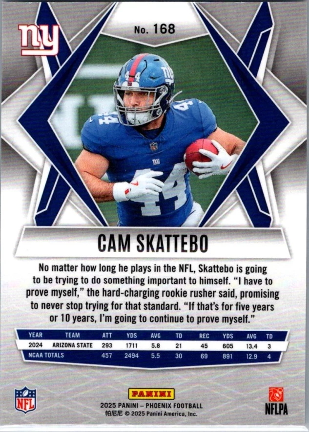 This is a nice example of a 2025 Panini Phoenix #168 Cam Skattebo