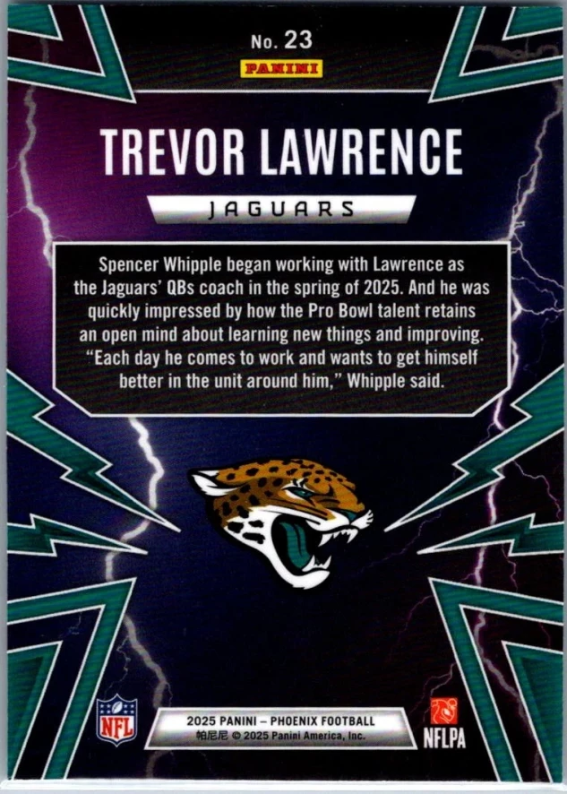 This is a nice example of a 2025 Panini Phoenix #23 Trevor Lawrence Thunderbirds