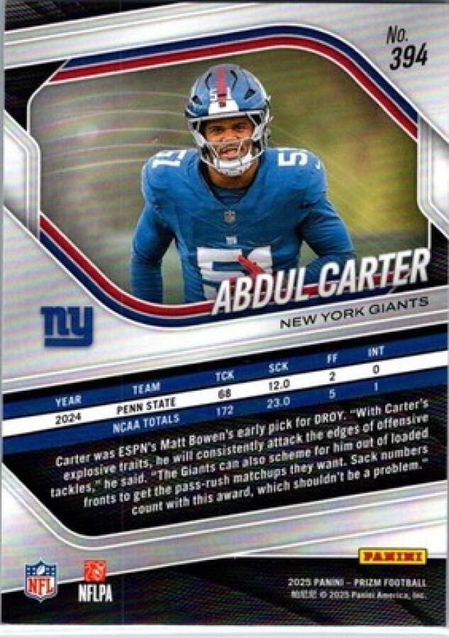 In 2025 Abdul Carter played for the New York Giants.