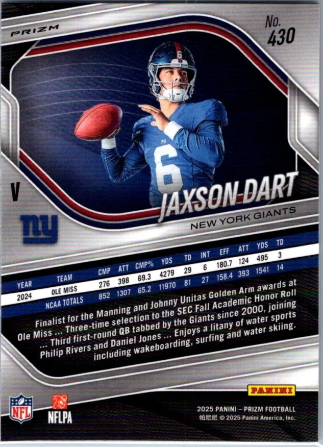 In 2025 Jaxson Dart played for the New York Giants.