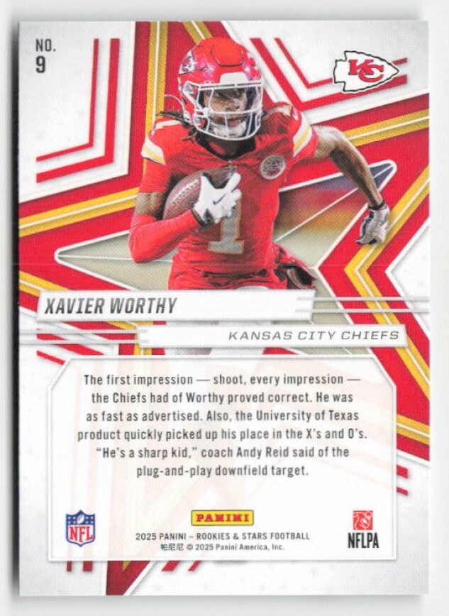 You are purchasing a 2025 Panini Rookies & Stars Xavier Worthy #9. You will receive the exact item in the photographs. Thank you for looking.