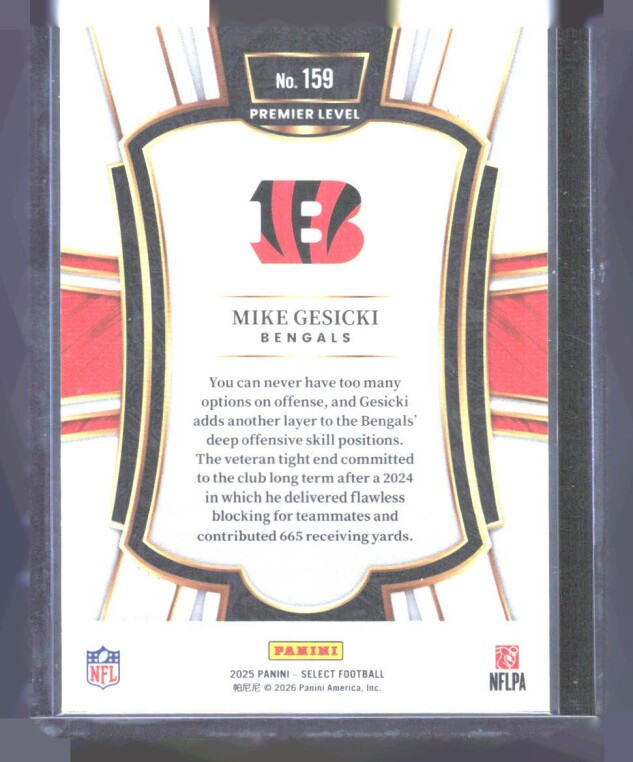 You are purchasing a 2025 Panini Select Mike Gesicki #159. You will receive the exact item in the photographs. Thank you for looking.