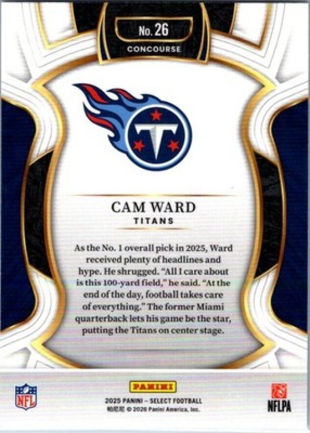 This is a nice example of a 2025 Panini Select #26 Cam Ward