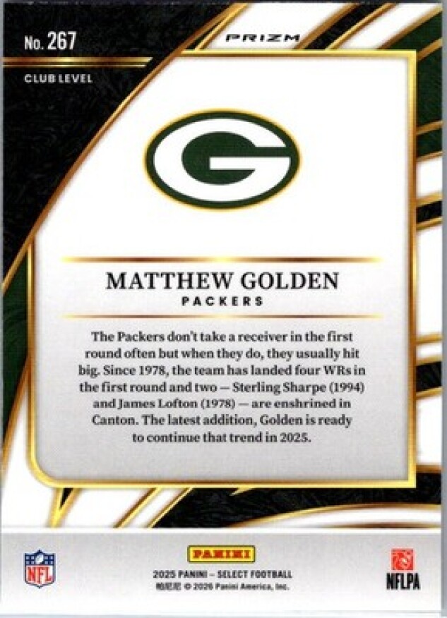 In 2025 Matthew Golden played for the Green Bay Packers.