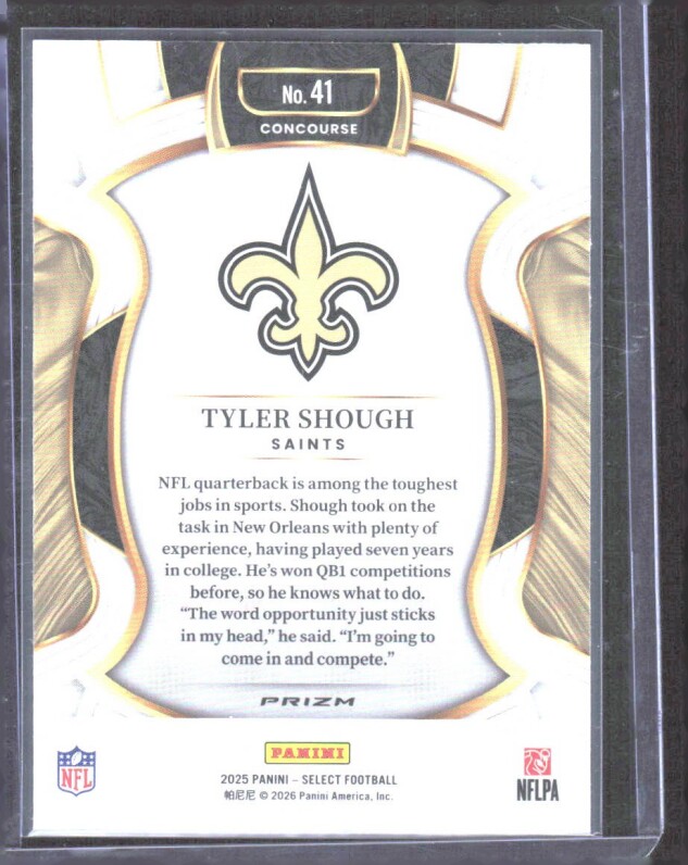 You are purchasing a 2025 Panini Select Tyler Shough #41 Pink Prizm Shock PINK ..SICK CARD!! RC. You will receive the exact item in the photographs. Thank you for looking.