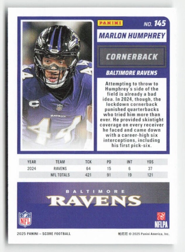 2025 Score #145 Marlon Humphrey Scorecard