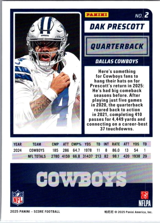 This is a nice example of a 2025 Score-A-Treat #2 Dak Prescott