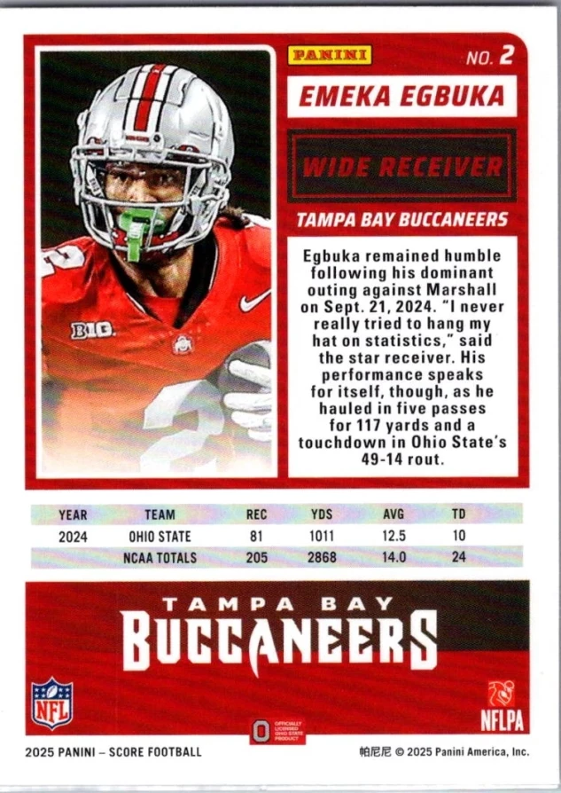In 2025 Emeka Egbuka played for the Tampa Bay Buccaneers.