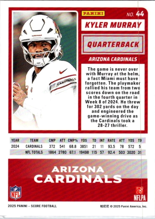 This is a nice example of a 2025 Score-A-Treat #44 Kyler Murray