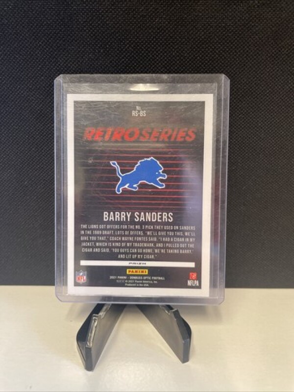 This Barry Sanders 2021 Donruss Optic Retro Series #RS-BS Holo trading card is a must-have for any Detroit Lions or football fan. The card features a stunning holo prizm design that adds a unique and valuable touch to any collection.