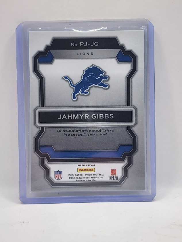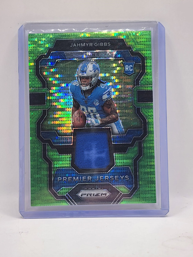 Thanks for your looking at my listing Jahmyr Gibbs 2023 Panini Prizm - Premier Jerseys #PJ-JG Neon Green Pulsar Prizm. Let me know if you have any questions!