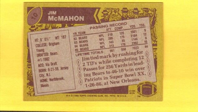 Jim McMahon #10 1986 Topps
