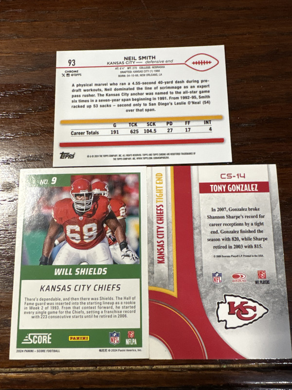 2024 wheel shields 2024 Neil Smith 2008 Tony Gonzalez Kansas City greats!