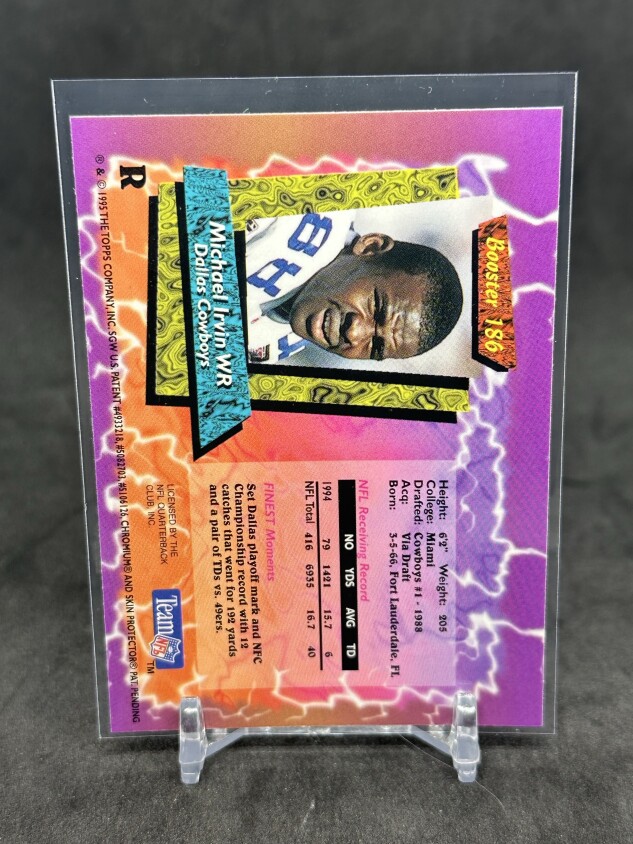 Michael Irvin 1995 Topps Finest Booster Refractor #186 Cowboys