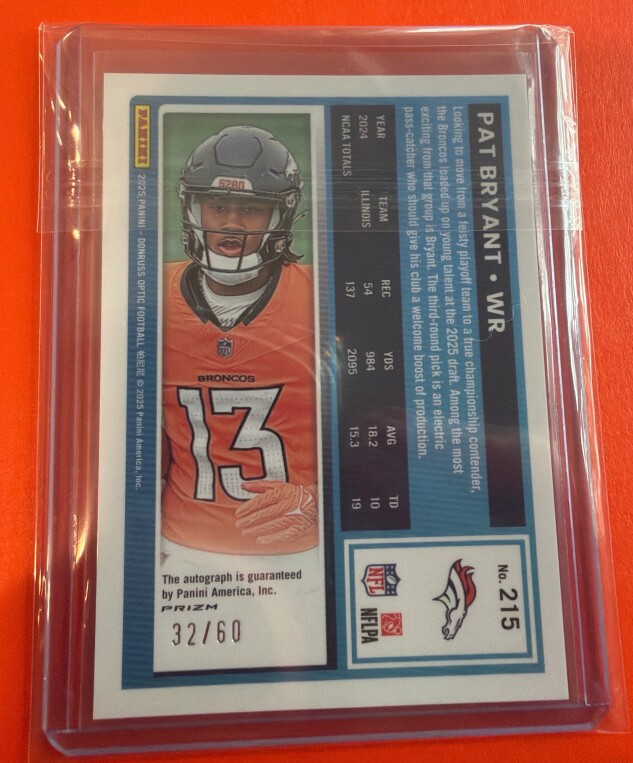 Optic Choice PAT BRYANT ROOKIE RATED AUTO! Numbered 32/60!