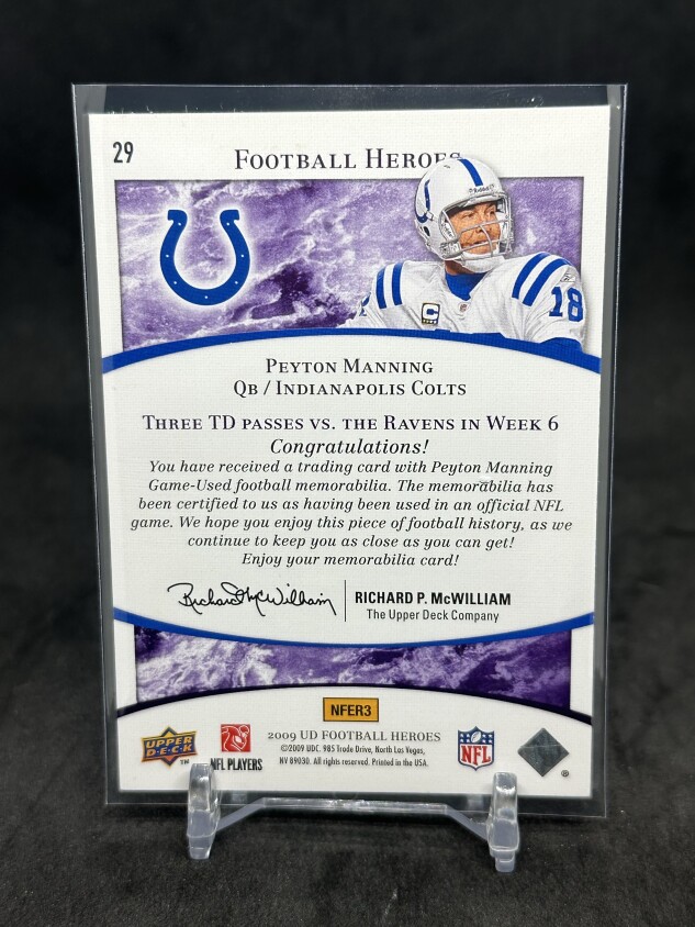 Peyton Manning 2009 Upper Deck Football Heroes Purple Jersey /50 #29 Colts