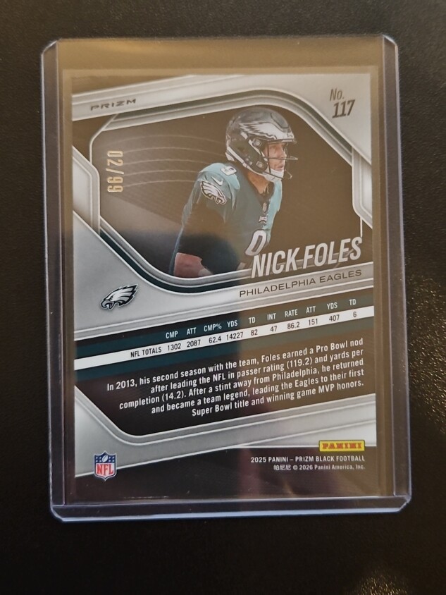 Great looking Clean Nick Foles Purple /99 from Prizm Black. Ready to ship and grade