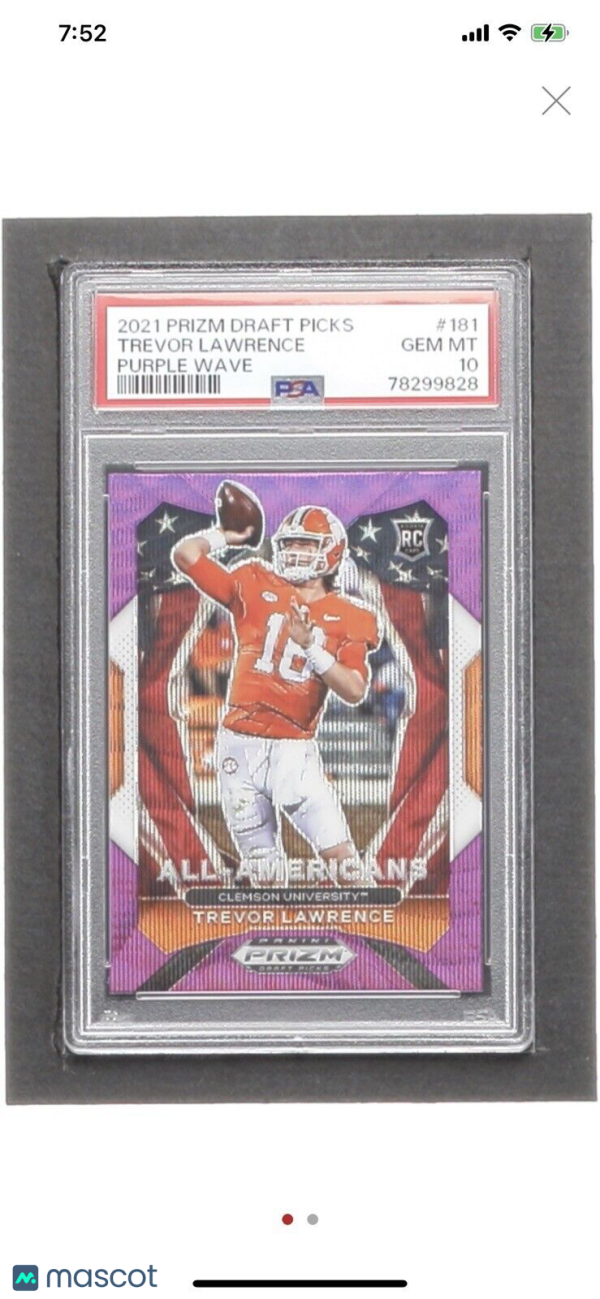 Trevor Lawrence 2021 Panini Prizm Draft Picks Prizms Purple Wave #181. Condition is Graded. Shipped with USPS Ground Advantage. Listed with Mascot.